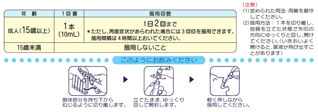 ●1回量ごとの飲みきりタイプの液剤なので、会議の合間や外出先でもいつでもどこでも服用できます。
